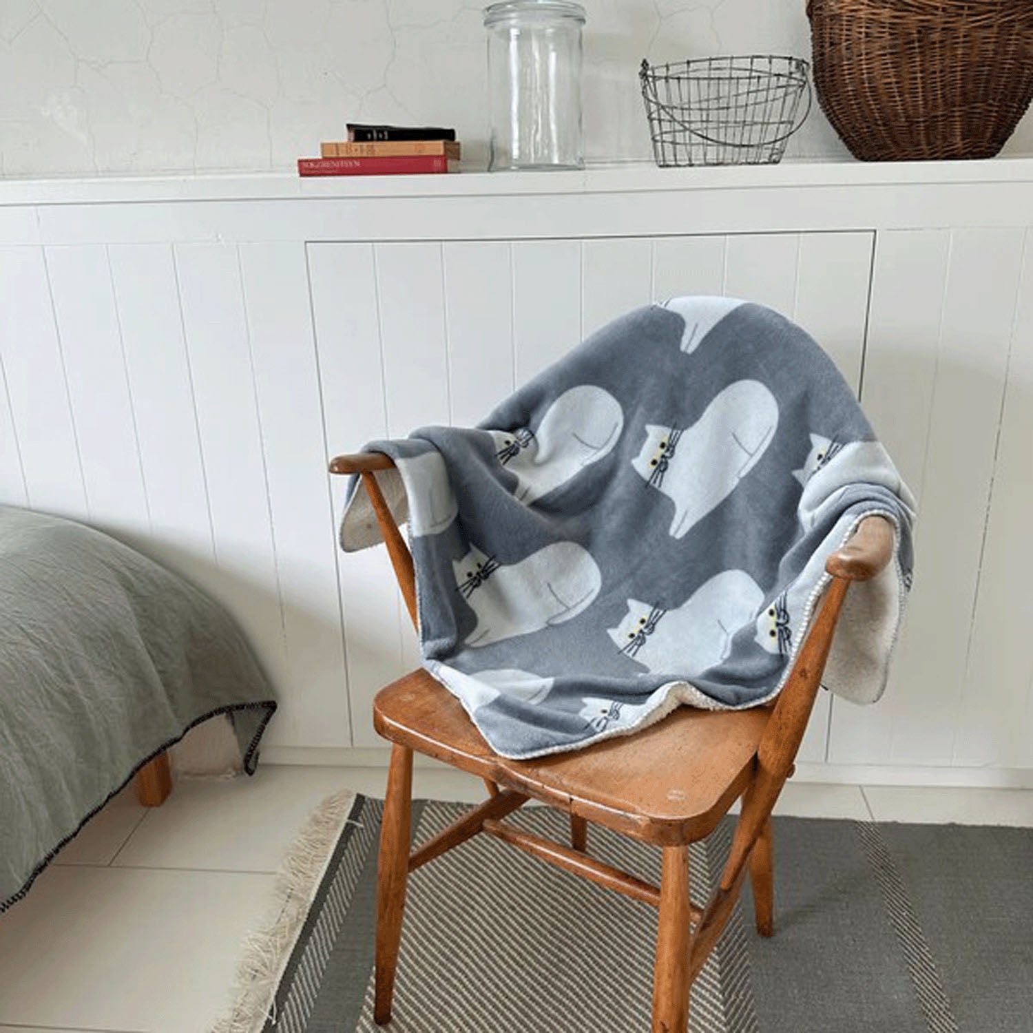 すまし顔の猫ちゃんがなんとも言えない可愛さのブランケット。