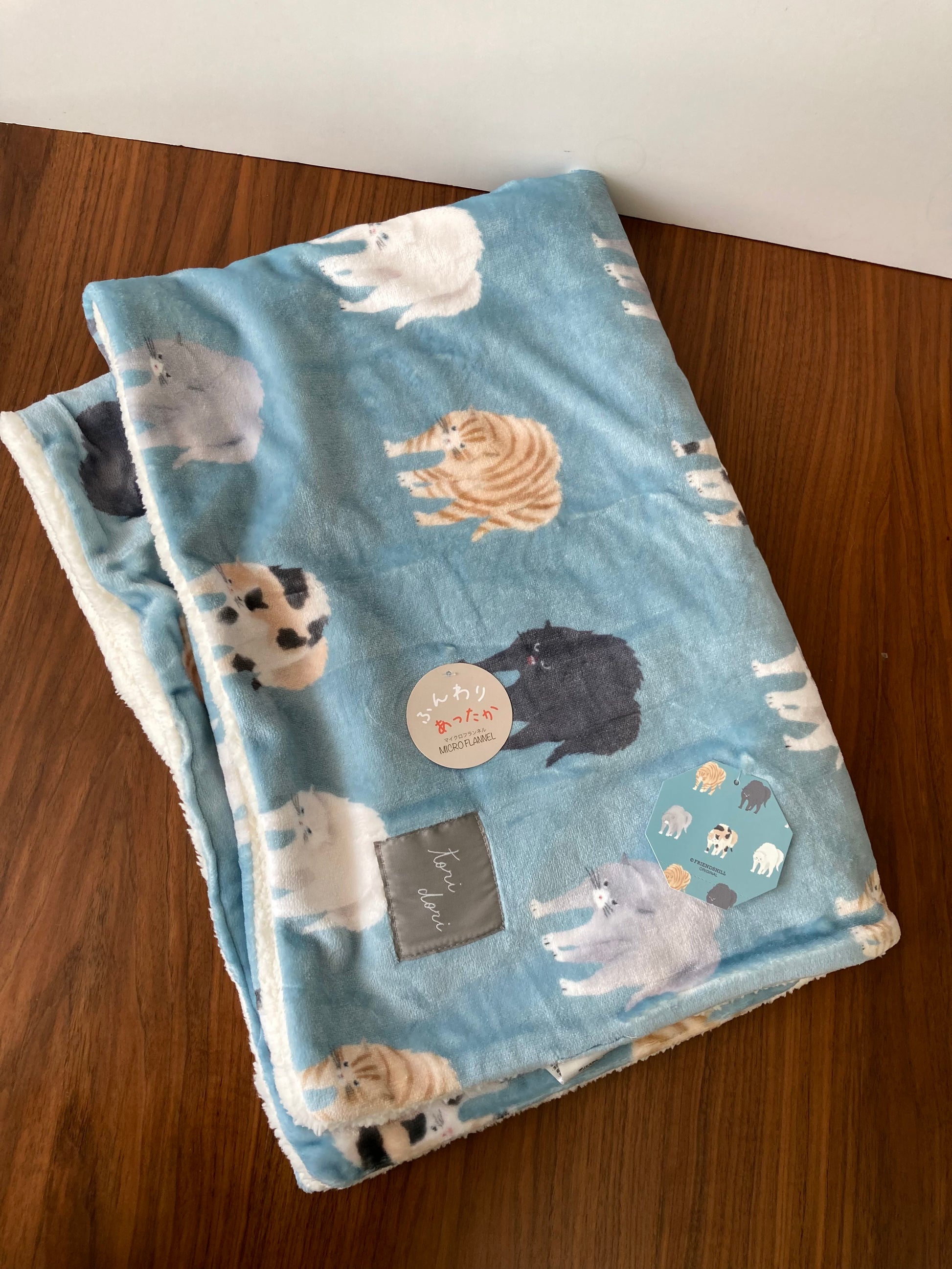 デジタルプリントで手描きタッチがかわいいブランケットです。