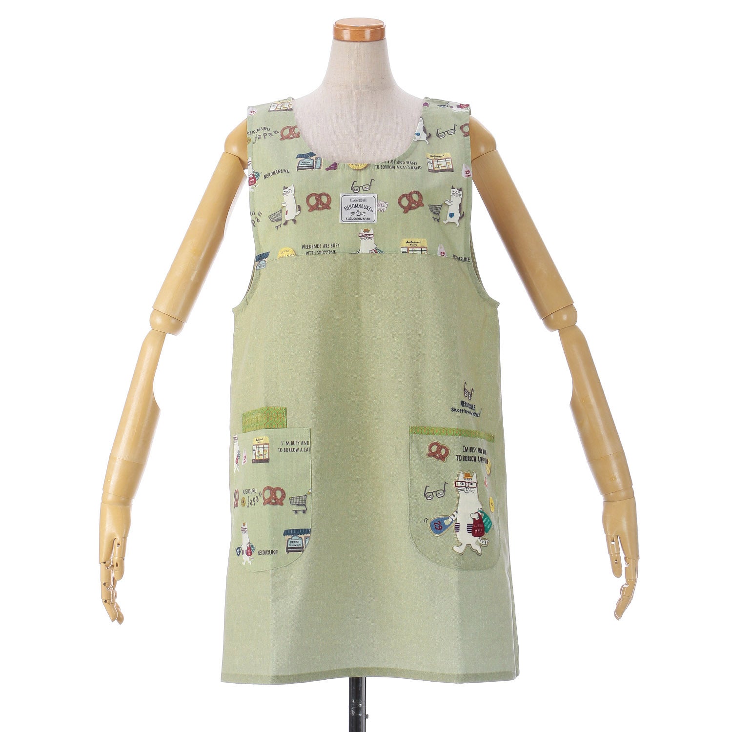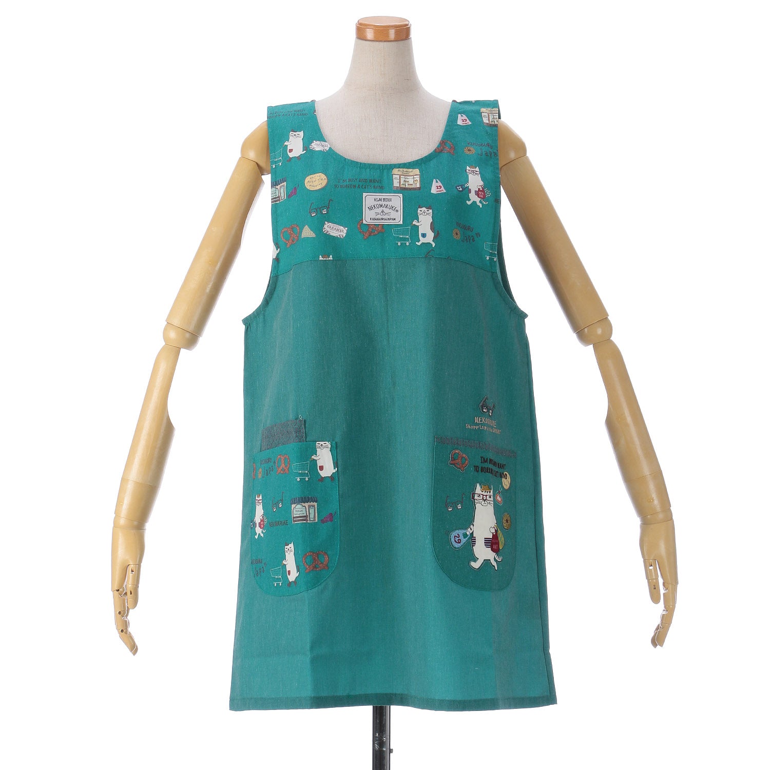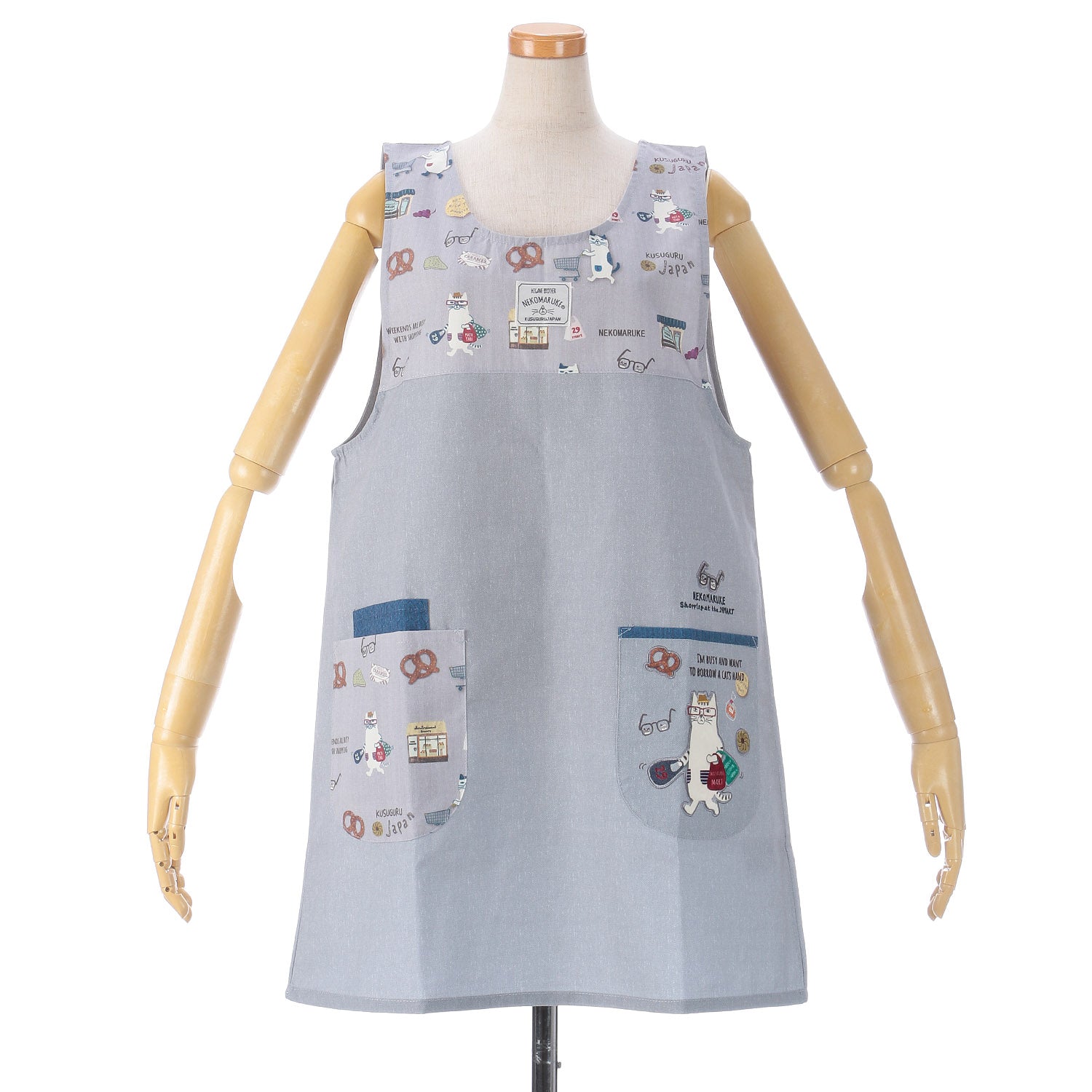 ネコまるけ 釦リボンあきエプロン【全3色】