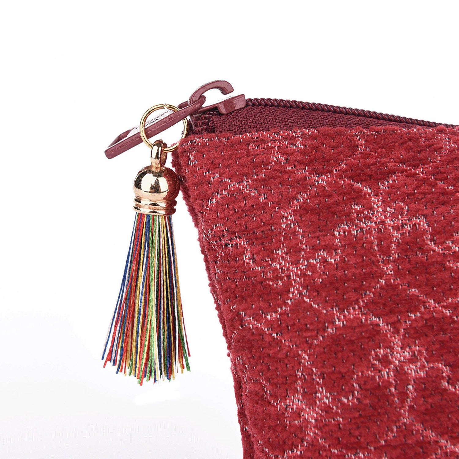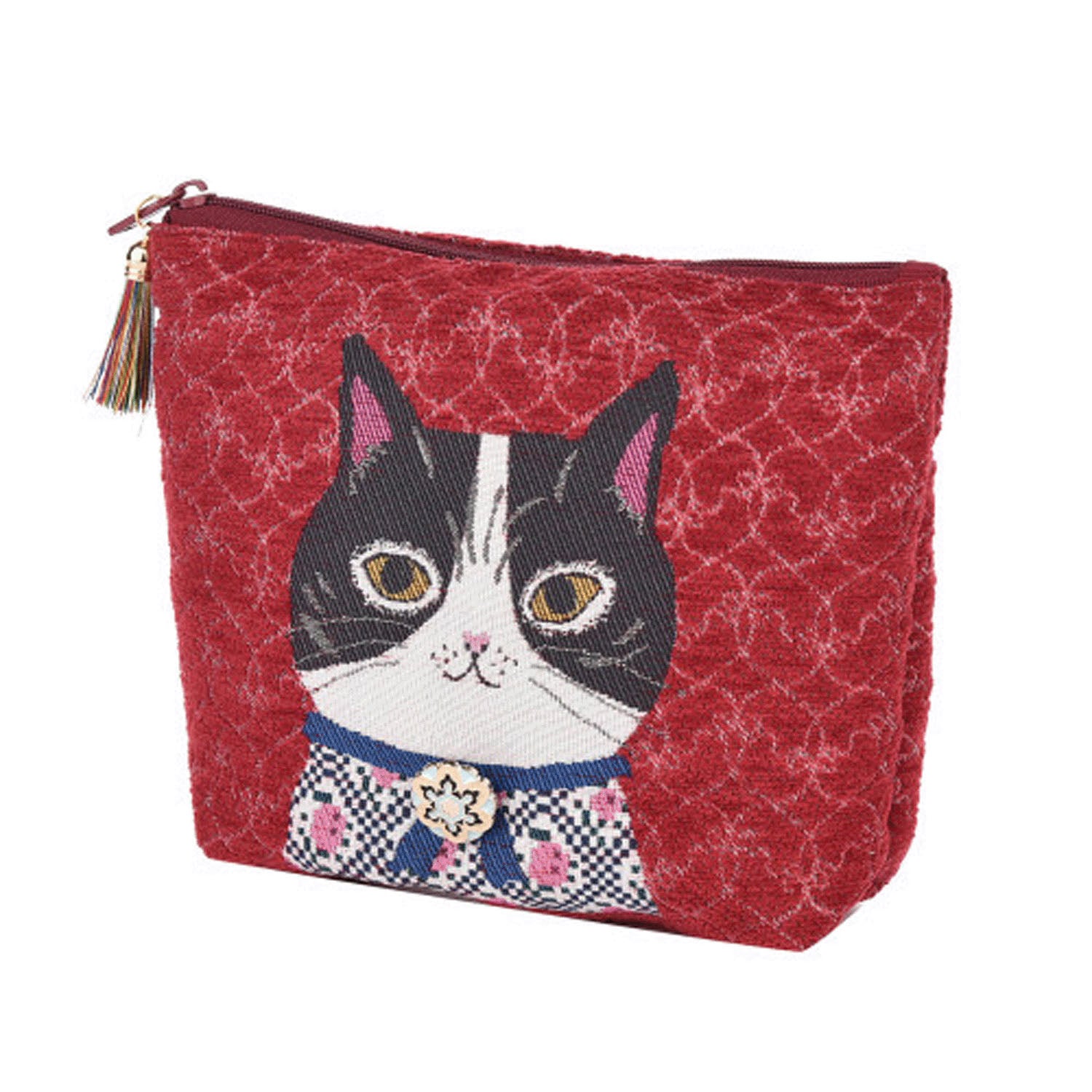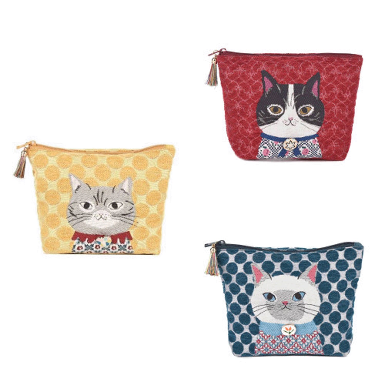 引手にはカラフルで可愛いフリンジでアクセント♪猫シルエットの小さな引手にも注目です。軽くてたっぷり入るポーチに仕上がってます。