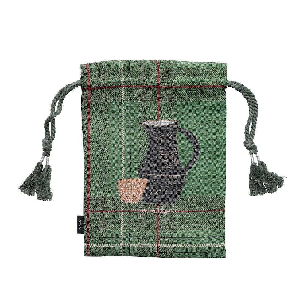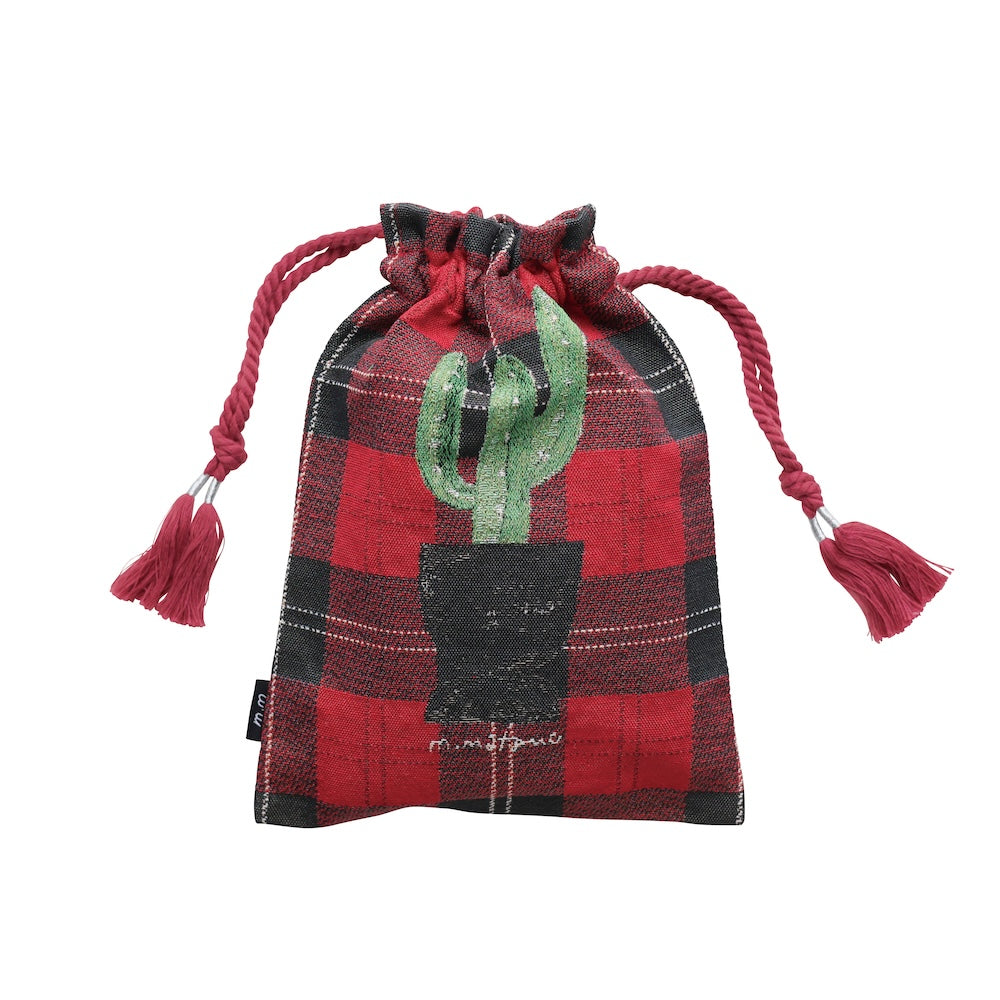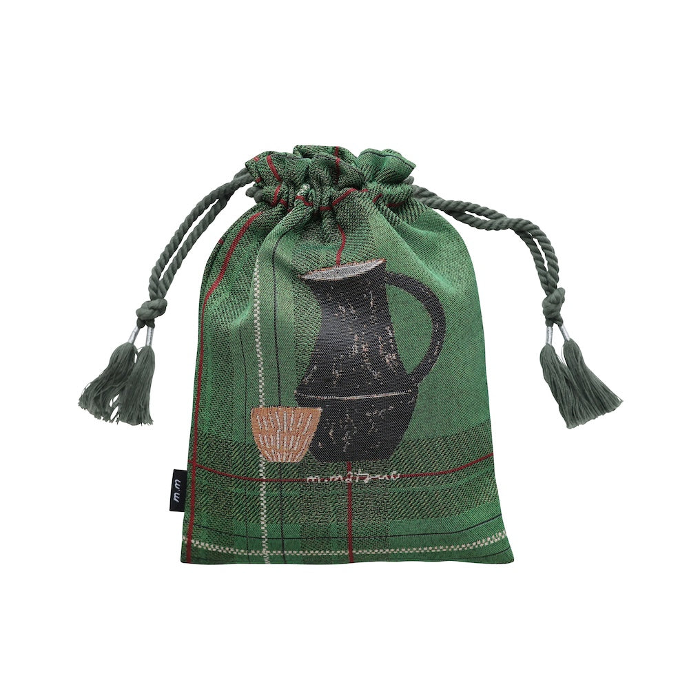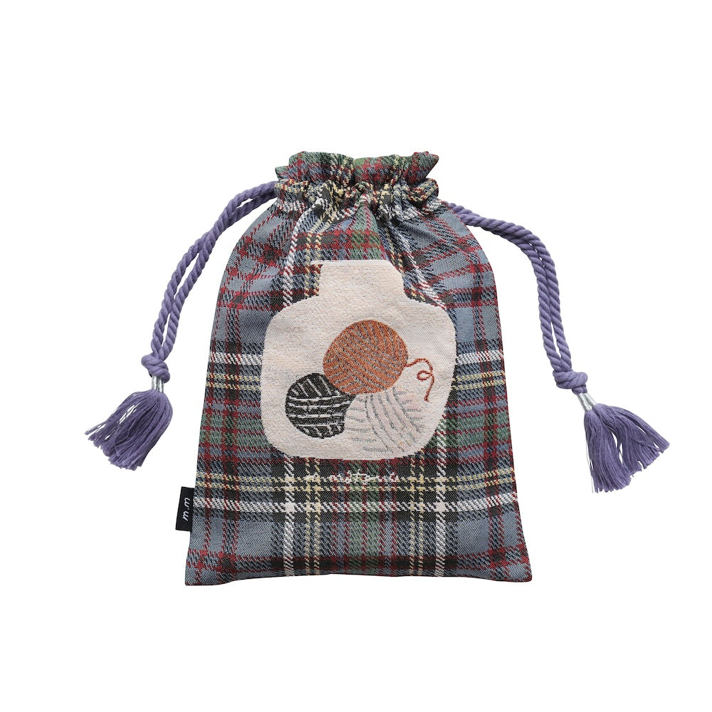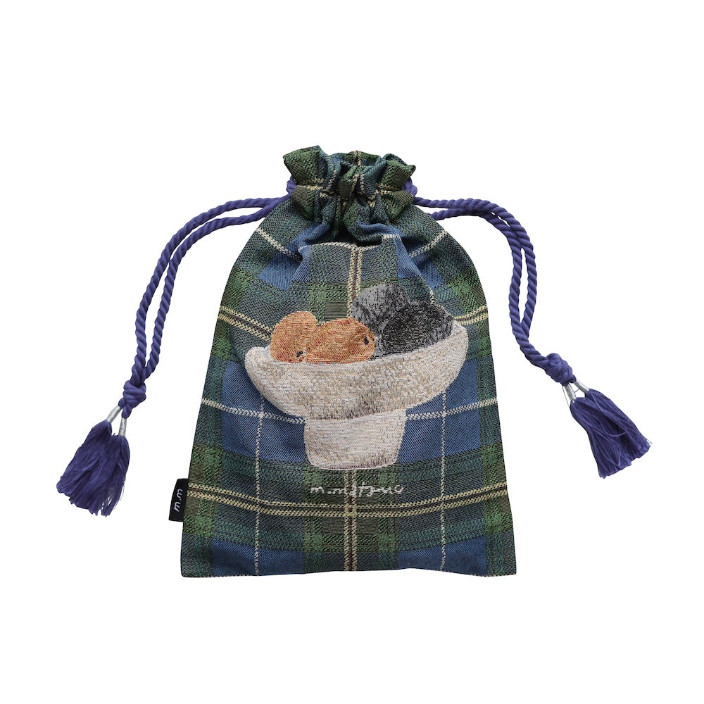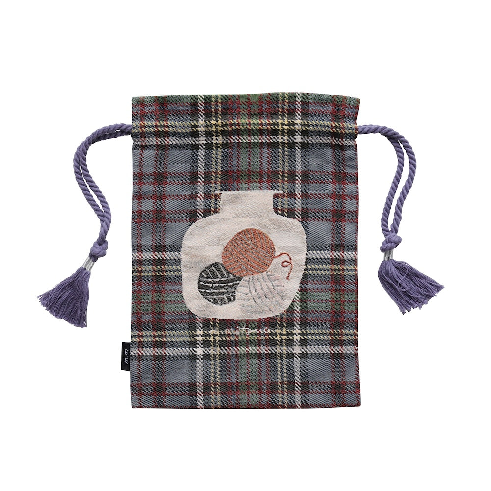 さまざまな表情やしぐさをみせてくれるネコ達が織り込まれた生地を使用して巾着を作りました。