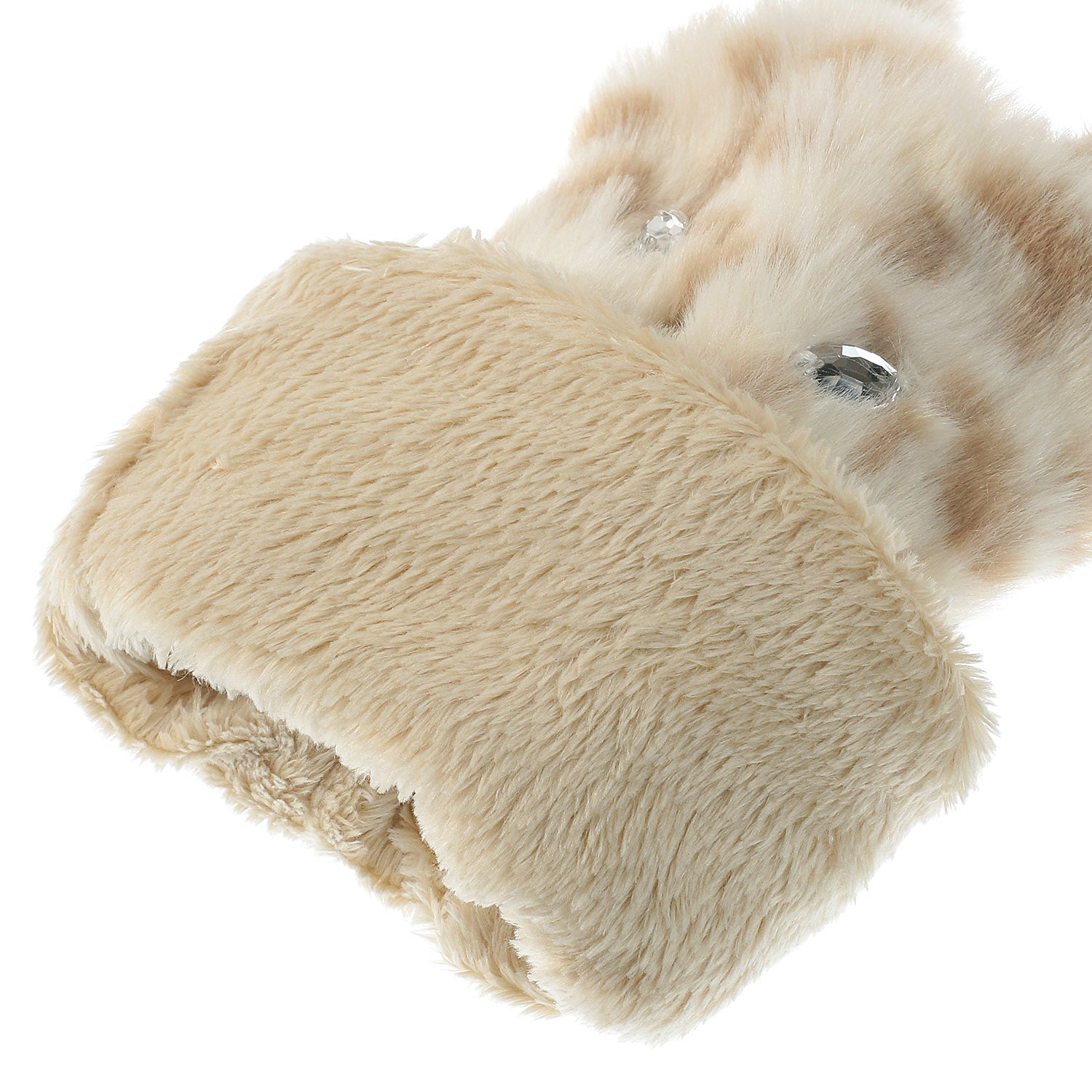 ファーにビジューのおめめがなんとも愛くるしいです♪中のファーはしっとりとした感触でふんわり暖かく、ずっと着けていたい心地よさ。
