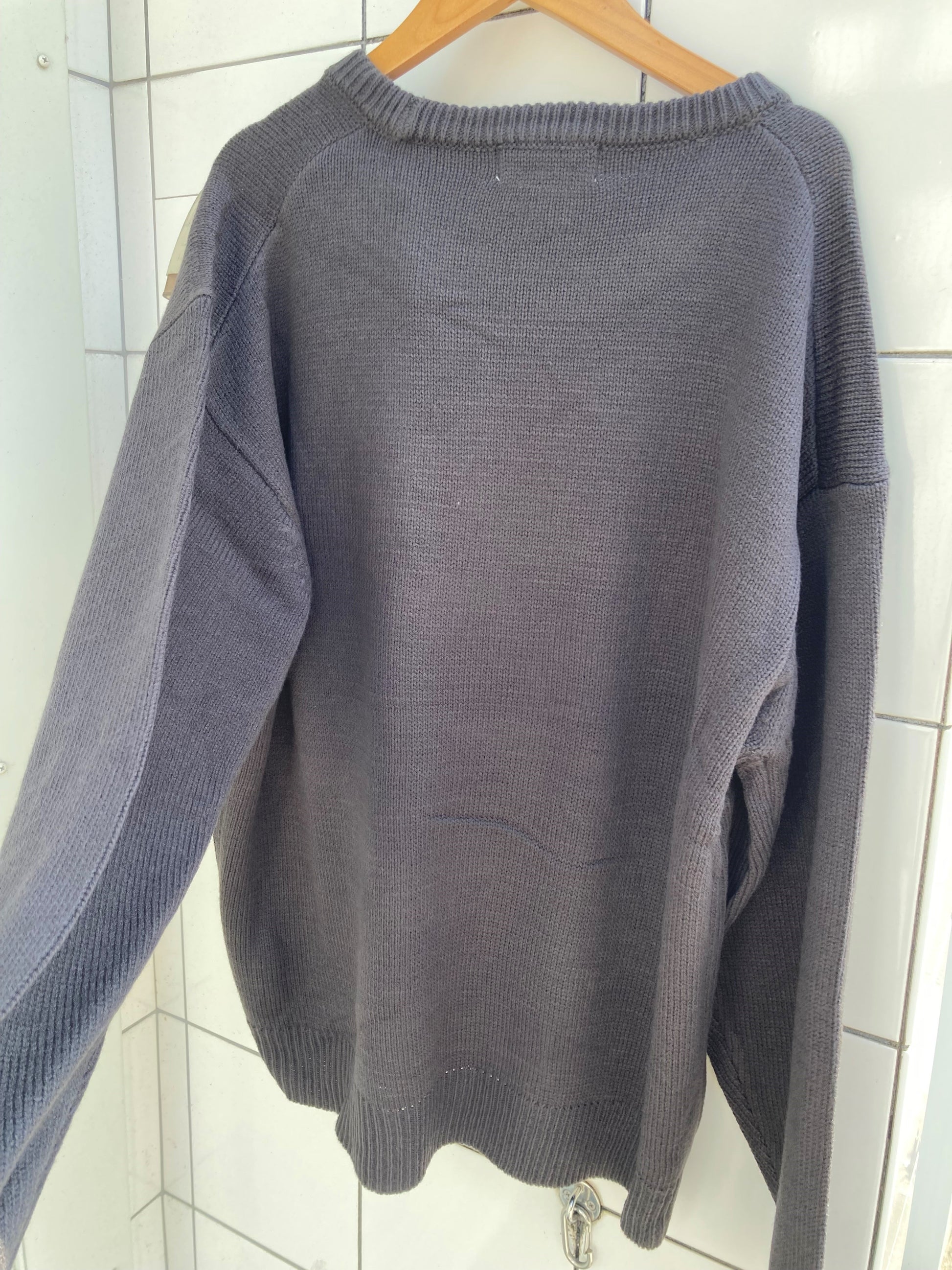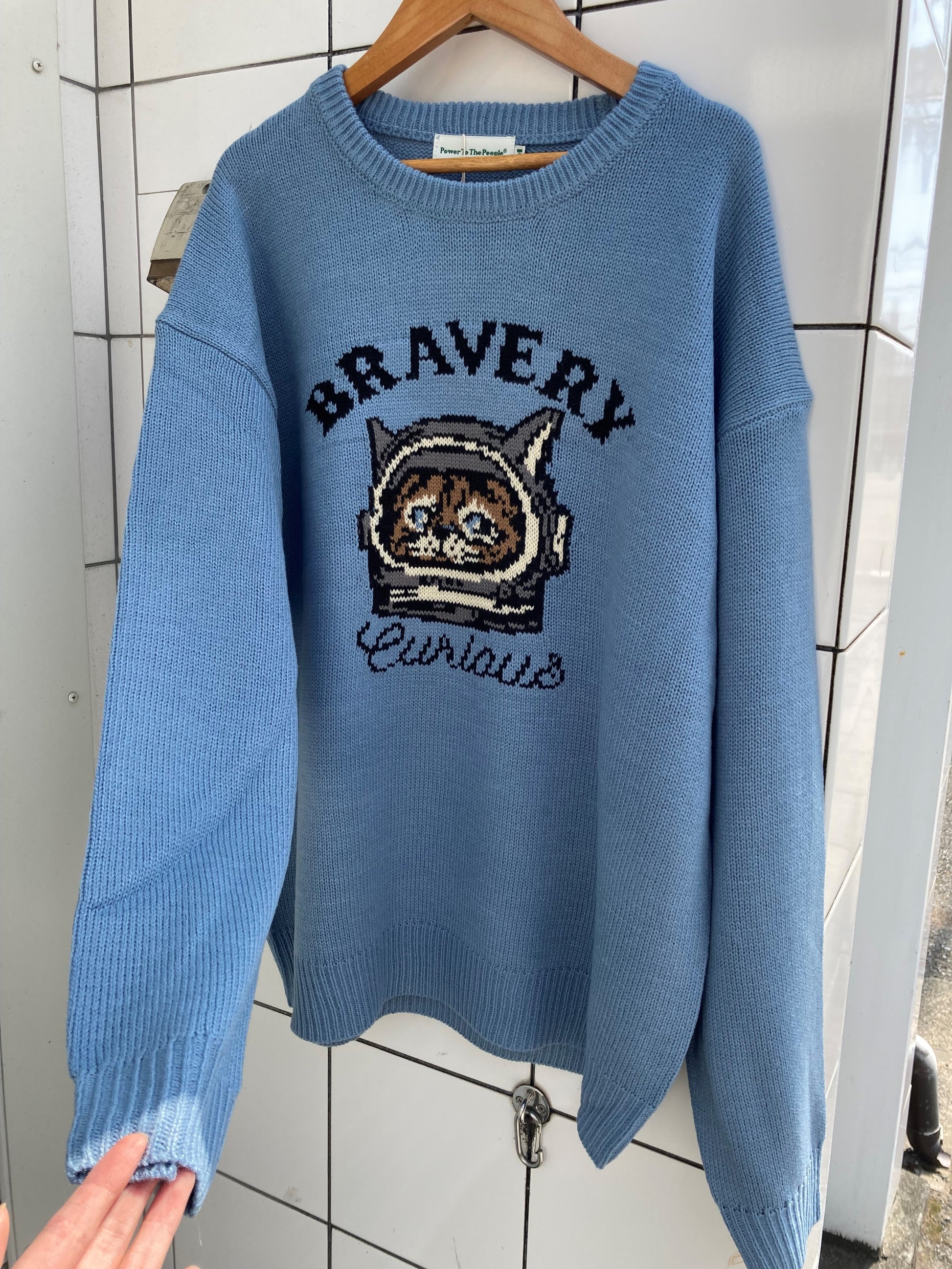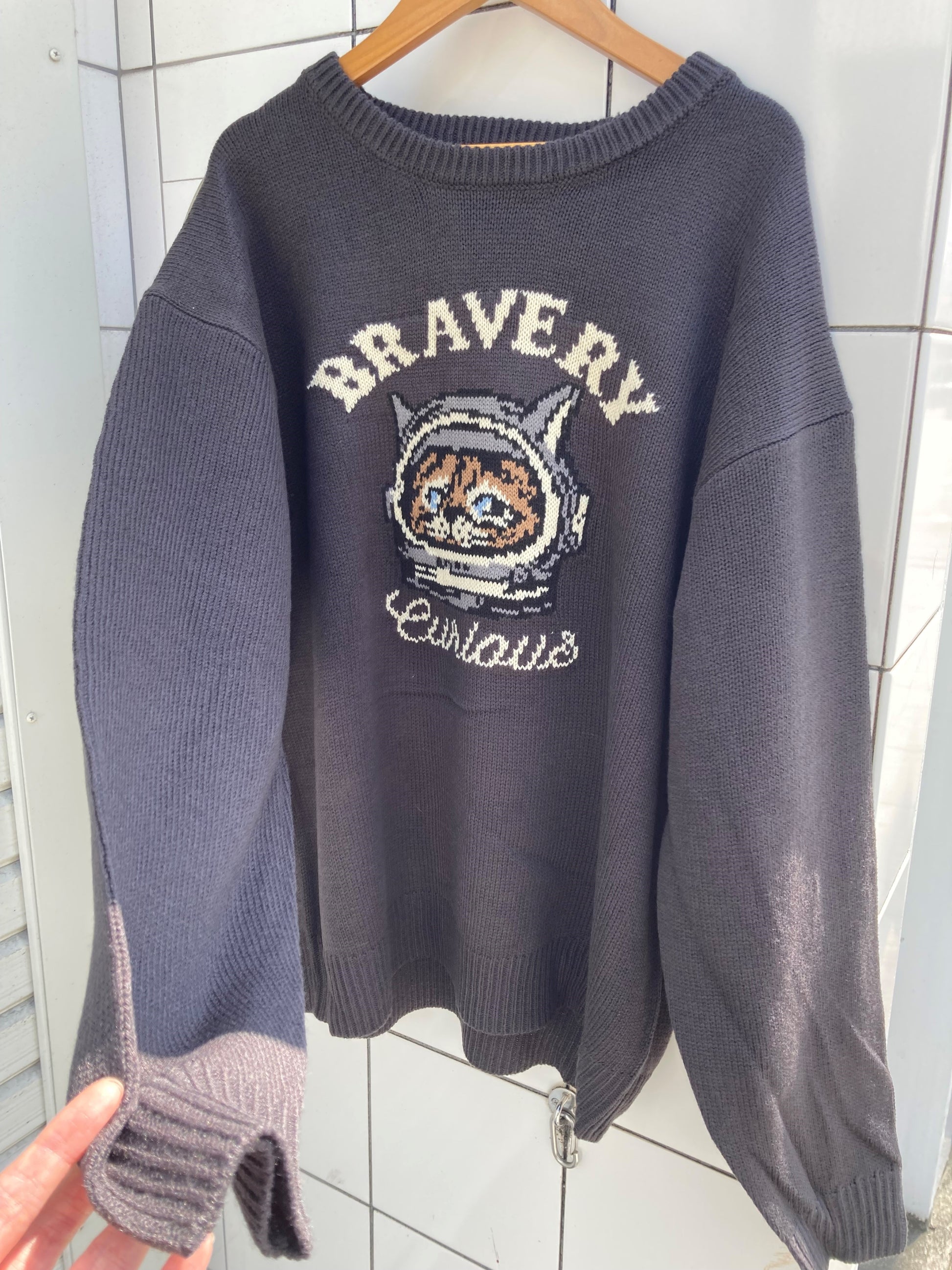 宇宙服キャットのフェイスを乗せた遊び心溢れるジャガードニット。