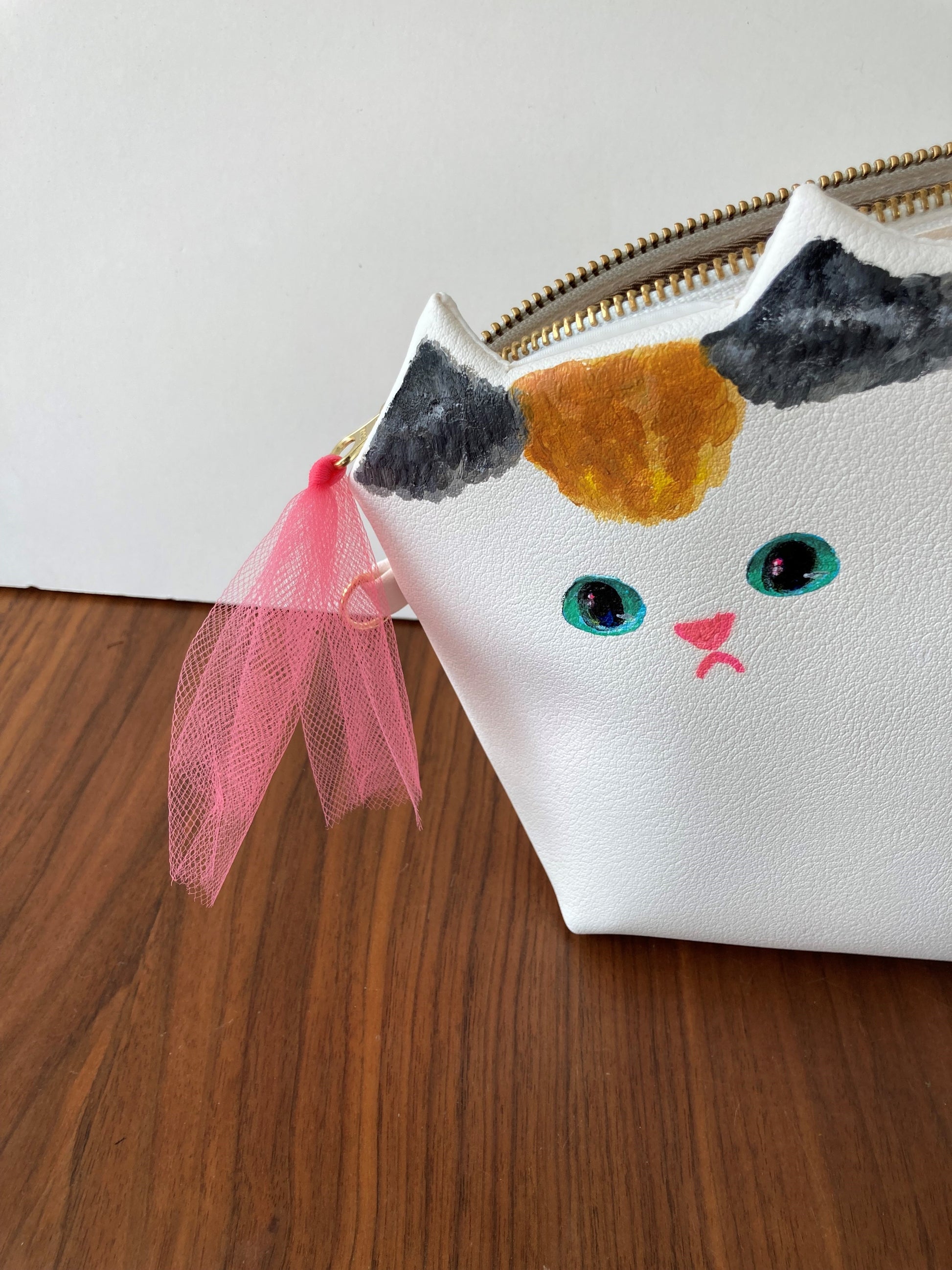 「さり気なく猫」を追求したクラッチポシェットマットレザータイプです。