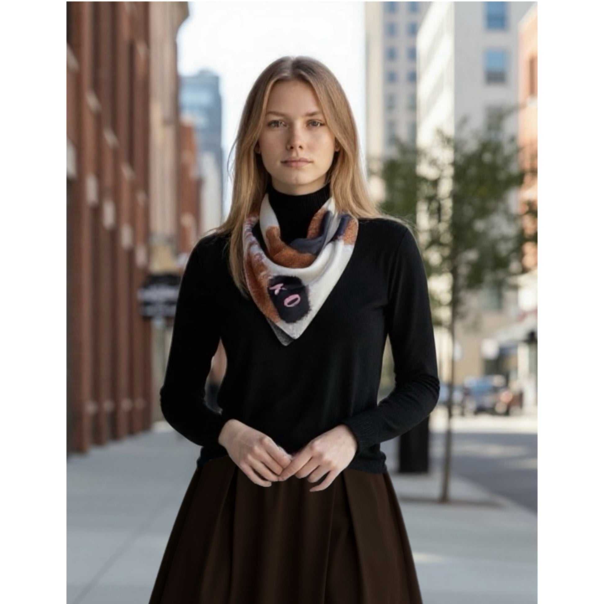 ハチワレスカーフは隠れたハチワレ猫を落とし込んだ幾何学模様のデザイン