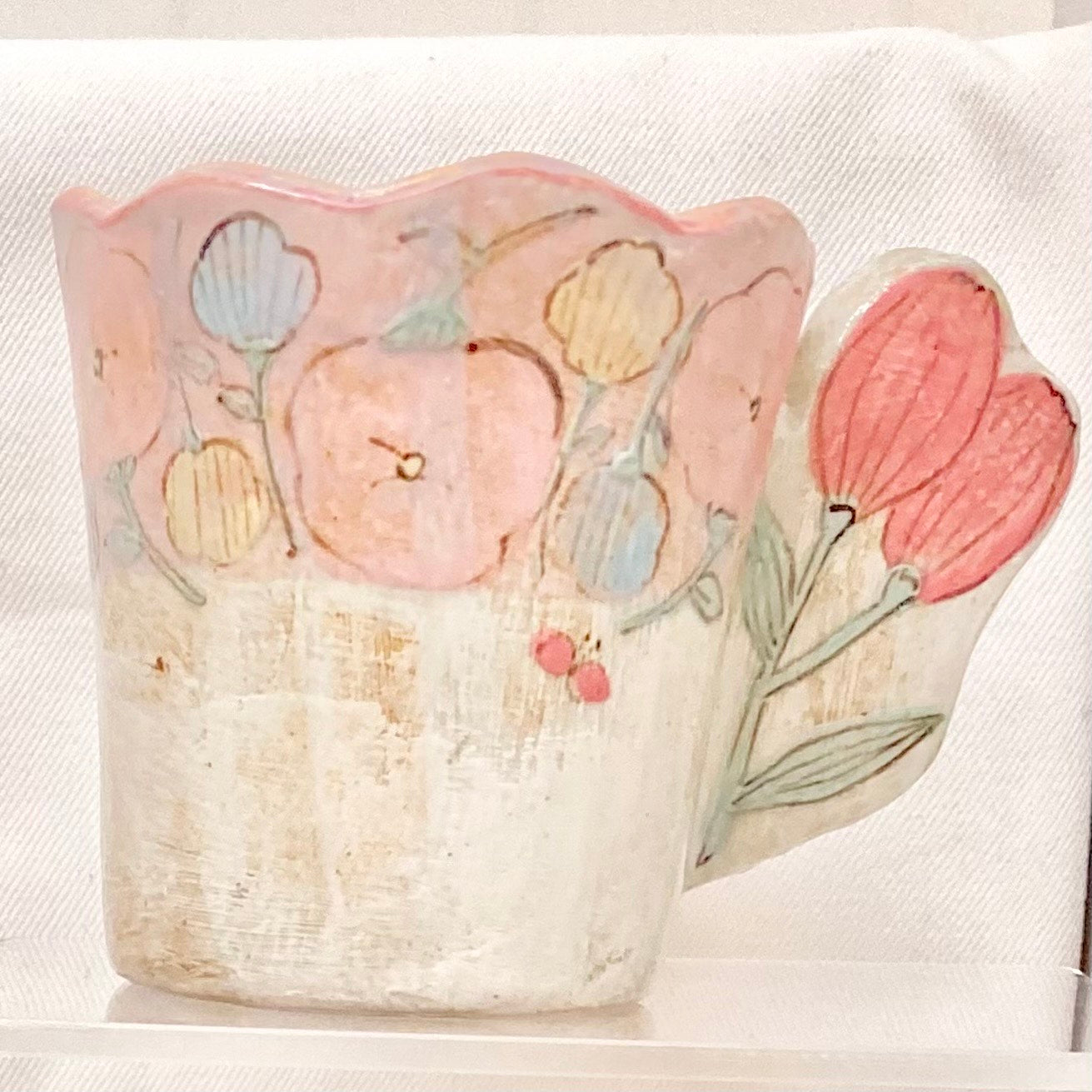the cozy nook 長方形.取っ手が花のマグカップ